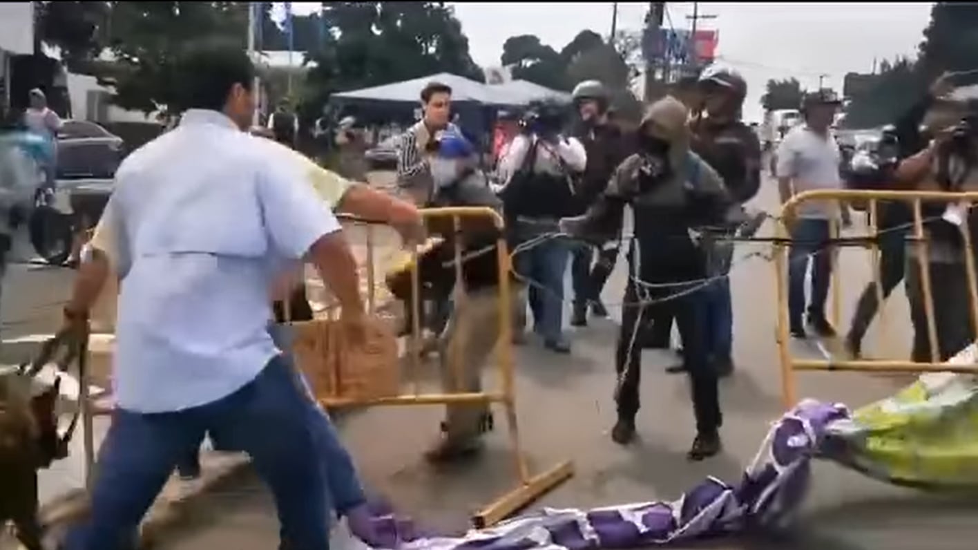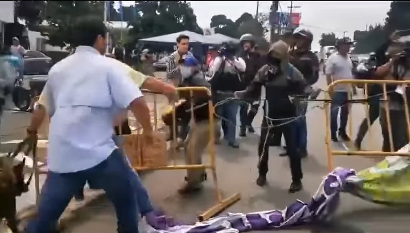 El grupo de manifestantes que exige la salida de la fiscal general, Consuelo Porras instaló obstáculos para obstruir el paso vehicular en la carretera, por lo que un grupo de personas llegó al lugar para desalojarlas, lo que originó una confrontación.
