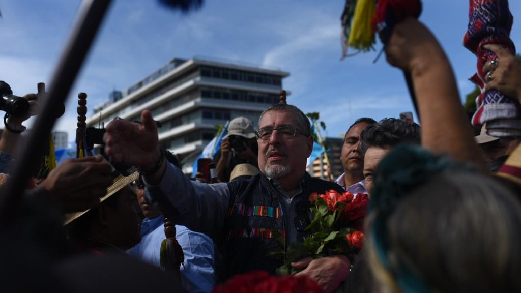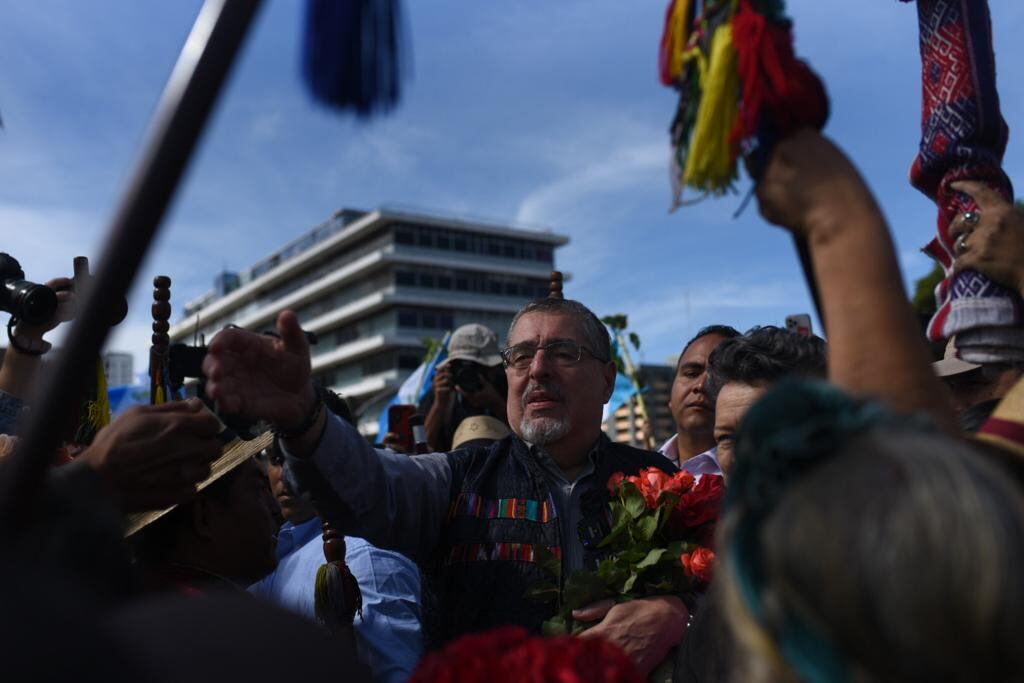 El presidente electo, Bernardo Arévalo y la vicepresidenta electa, Karin Herrera, acudieron este viernes 20 de octubre al centro cívico, lugar en el que se concentran miles de guatemaltecos miembros de distintas organizaciones y sindicatos del país, para conmemorar el 79 aniversario de la Revolución de 1944.