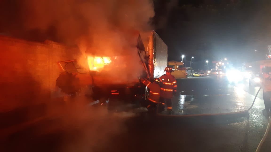 Los Bomberos Voluntarios lograron controlar un incendio en la parte frontal de un camión, evitando que el vehículo quedará completamente consumido por las llamas.
