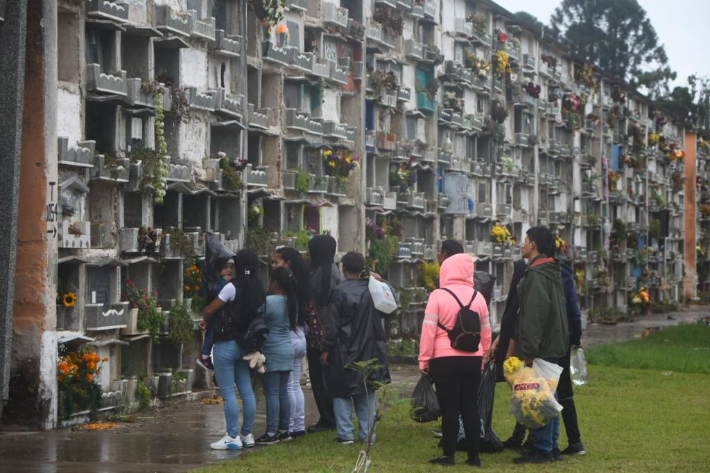 Familias, visitantes y trabajadores del lugar caminan en los estrechos espacios del cementerio para limpiar los nichos, colocar flores nuevas y compartir un momento con los seres queridos que ya no están con ellos.