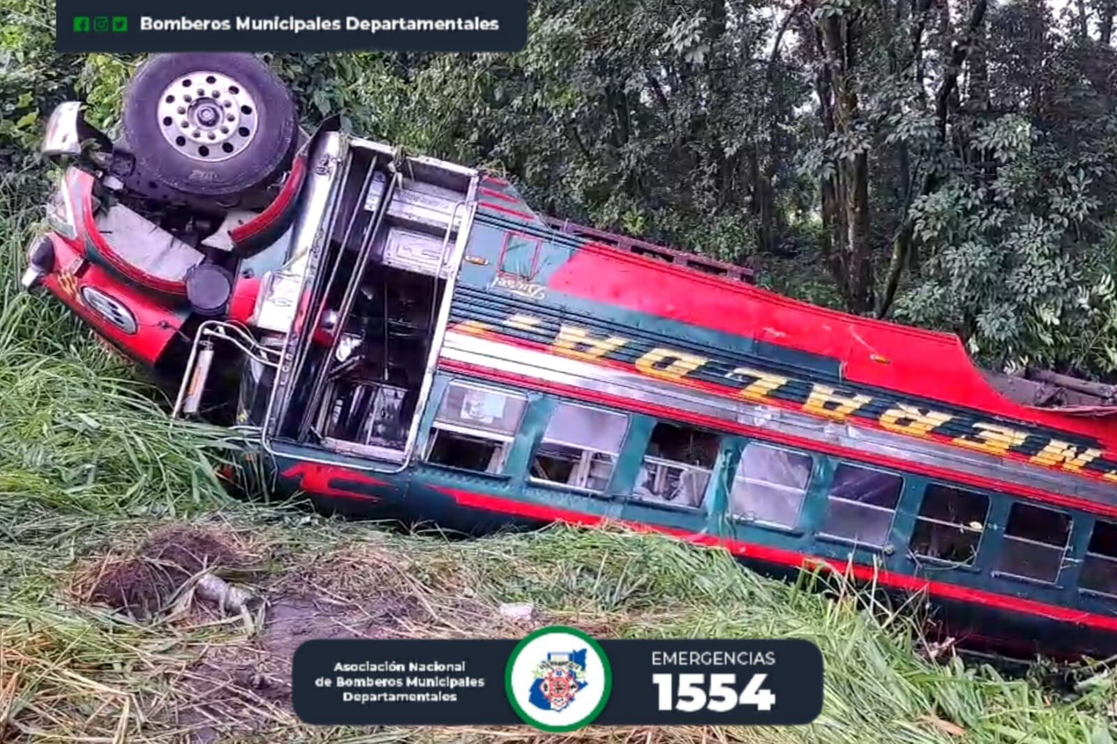 Un bus de los transportes Esmeralda cayó a una hondonada en el kilómetro 137.5 de la ruta CA-2, Finca Palafox en San Antonio Suchitepéquez, la mañana de este lunes 30 de octubre, informaron los Bomberos Municipales Departamentales.
