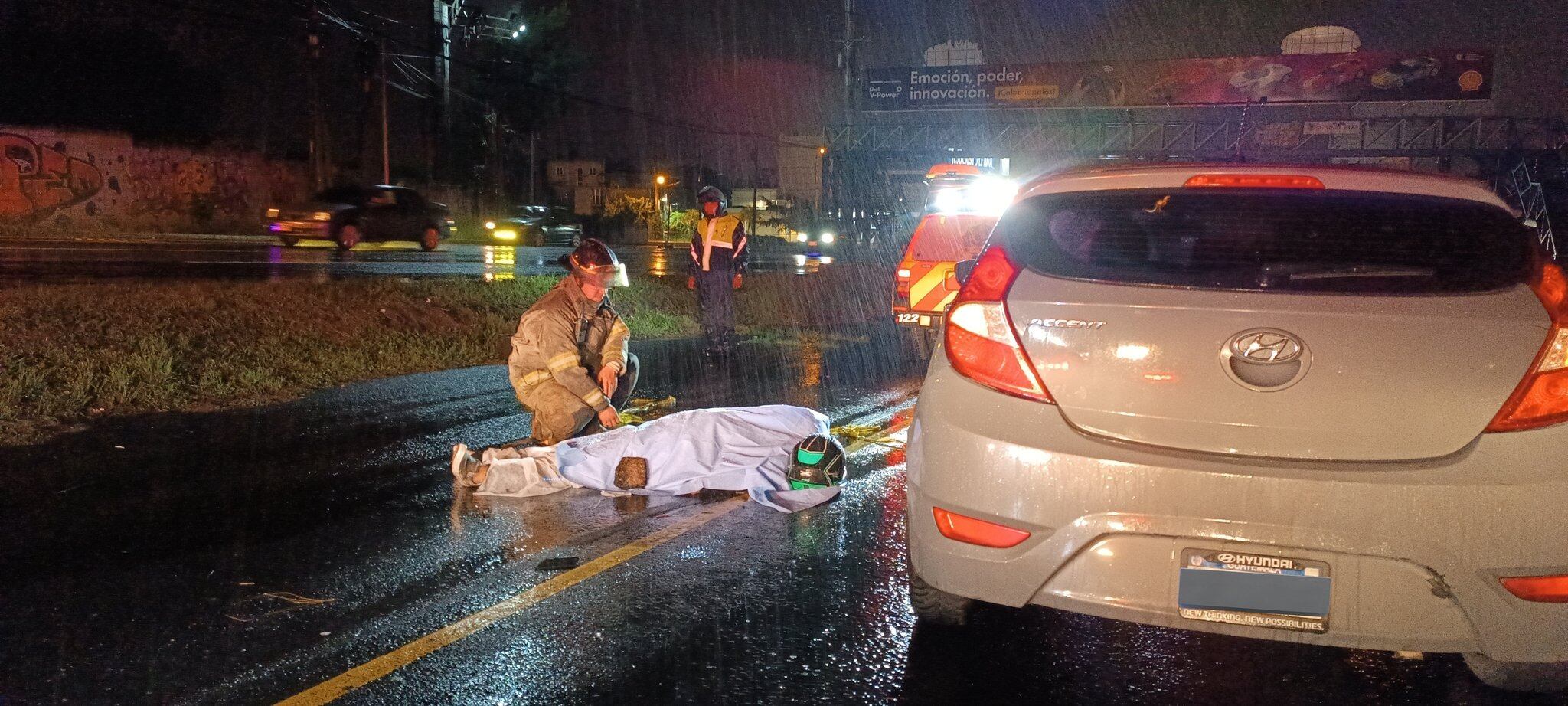 Cuando ni siquiera había amanecido, el conductor de una motocicleta chocó con un vehículo tipo sedán, quedando debajo del mismo y causándose la muerte de manera instantánea. Los Bomberos Voluntarios reportaron que la víctima no fue identificada, pero le calcularon unos 44 años de edad.
