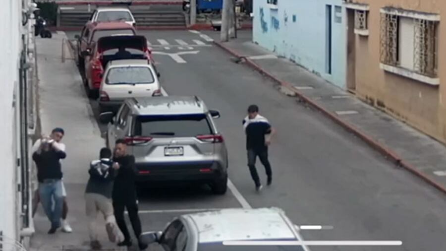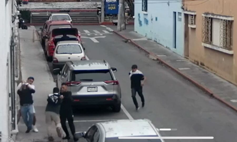 En las imágenes captadas se observa que los hechos tuvieron lugar este jueves, 2 de noviembre, a las 15:46 horas, sobre la cuarta calle, entre la séptima avenida y el Parque Jocotenango (Morazán), en la zona 2.