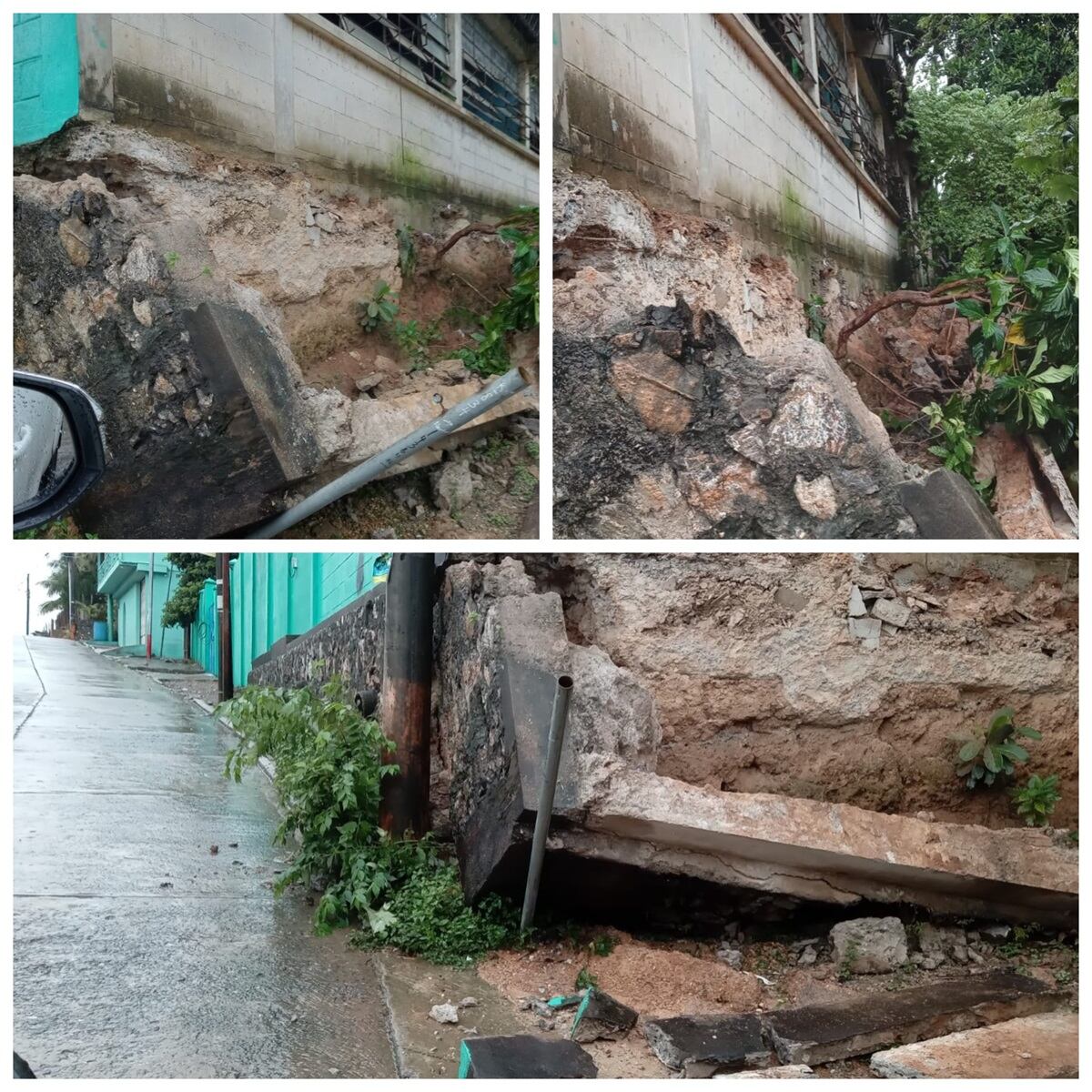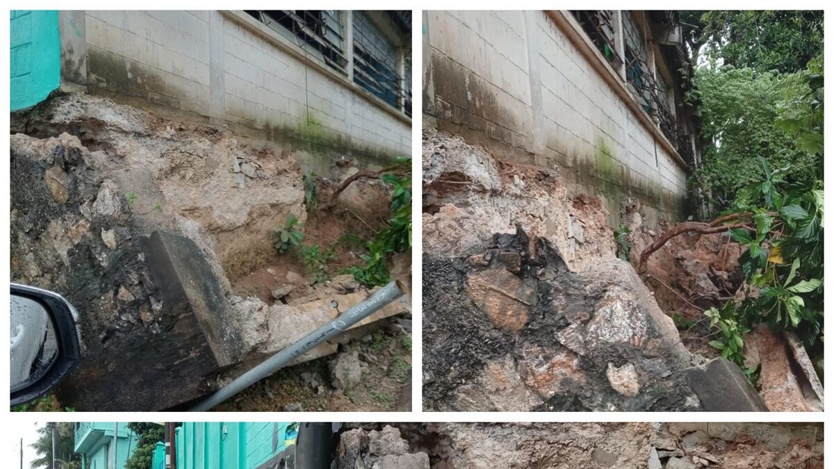 La Conred reportó que, debido a las fuertes lluvias y saturación del suelo, se registró el colapso estructural de la escuela Ana Dolores Cabrera de Portillo ubicada en colonia San Manuel II, municipio de Puerto Barrios.
