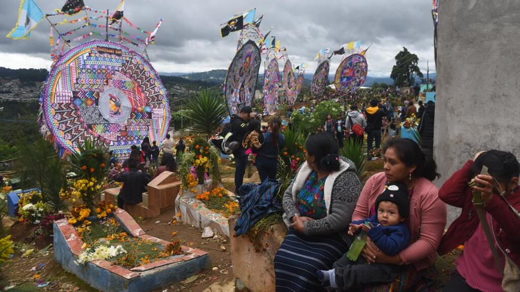 Sin embargo, este domingo, las familias de Santiago Sacatepéquez acudieron al cementerio desde tempranas horas para honrar la memoria de sus seres queridos. Engalanaron las tumbas con flores anaranjadas. Y, con entusiasmo, esperaron el espectáculo de los barriletes gigantes que llenaron el cielo de colores.