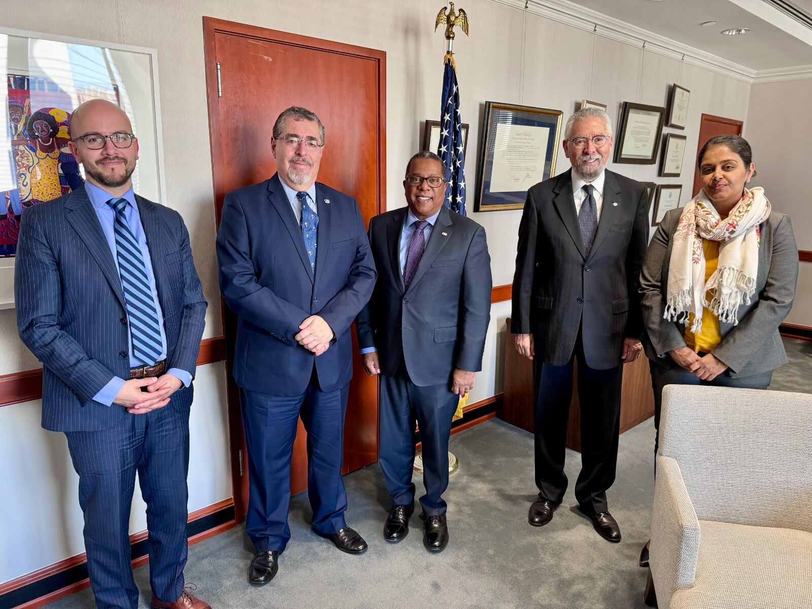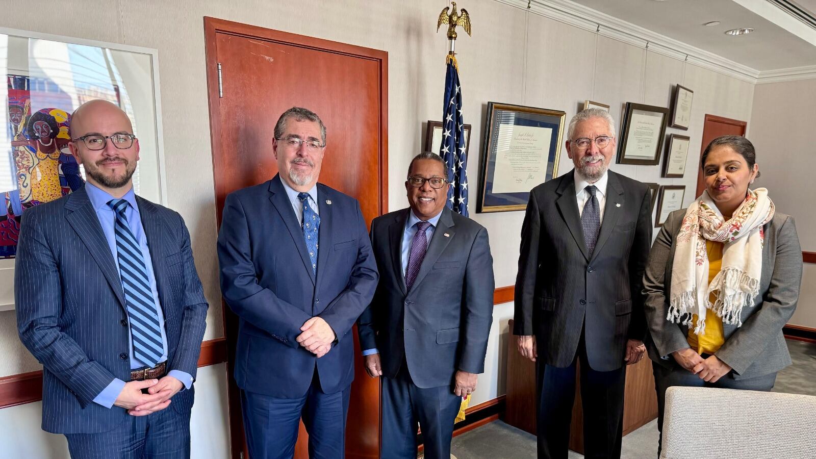 Arévalo también sostuvo un encuentro con los representantes de la Fundación Nacional para la Democracia (NED), Instituto Republicano Internacional (IRI) y el instituto Demócrata Internacional (NDI), además participó la embajadora estadounidense, Liliana Ayalde, y la juez guatemalteca, Claudia Escobar, quienes han expresado su compromiso por el fortalecimiento de las instituciones, indicó Arévalo.