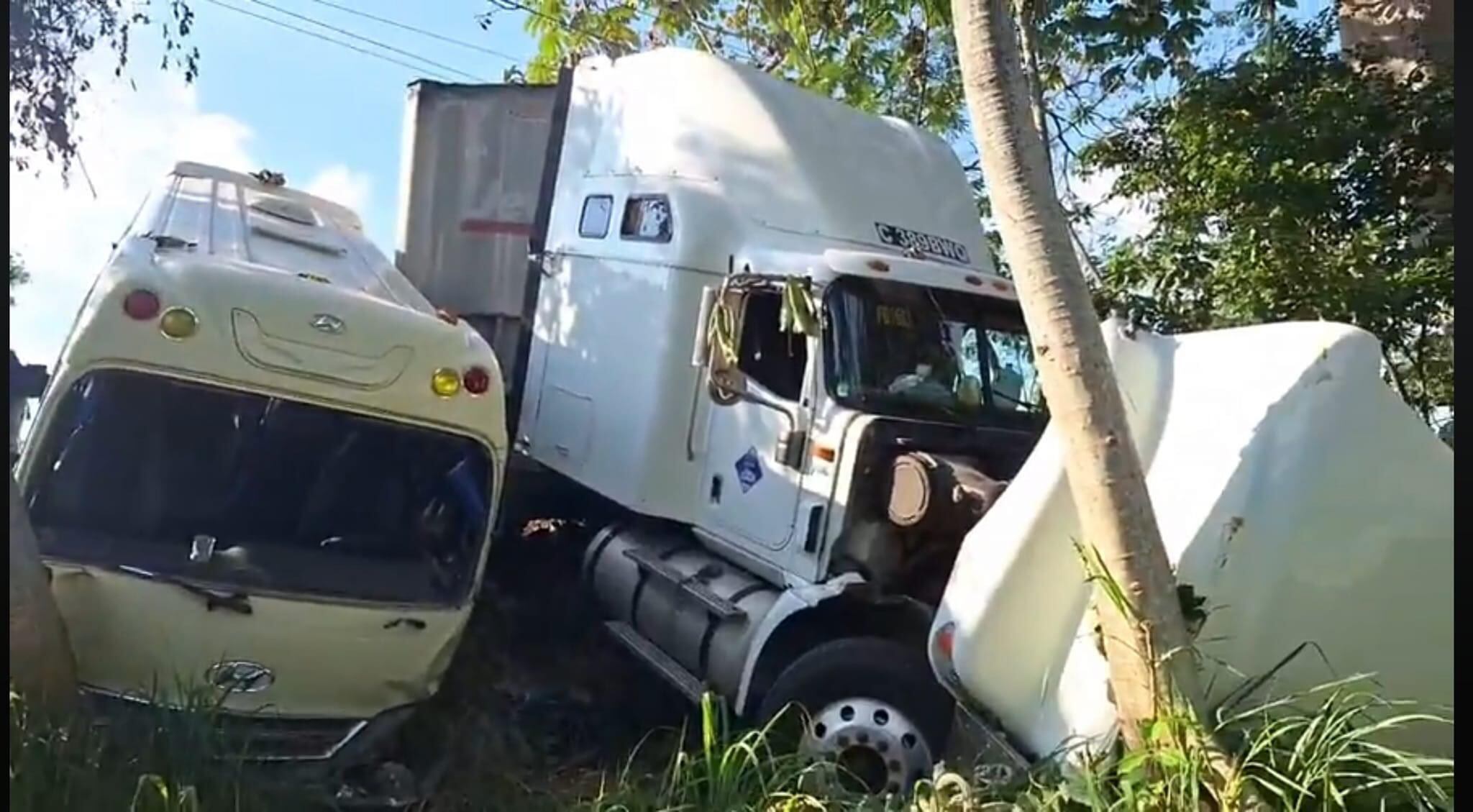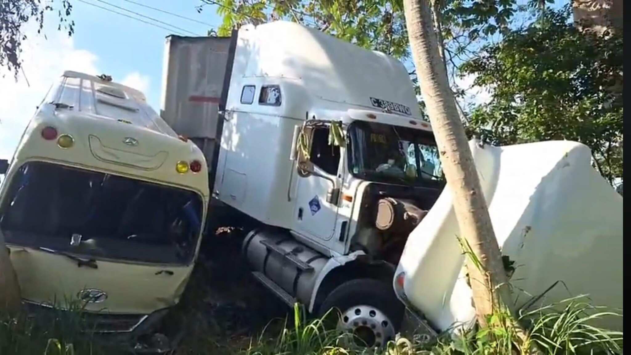 La Cruz Roja Guatemalteca reportó el traslado de 3 personas heridas luego que un tráiler colisionara contra un microbús.