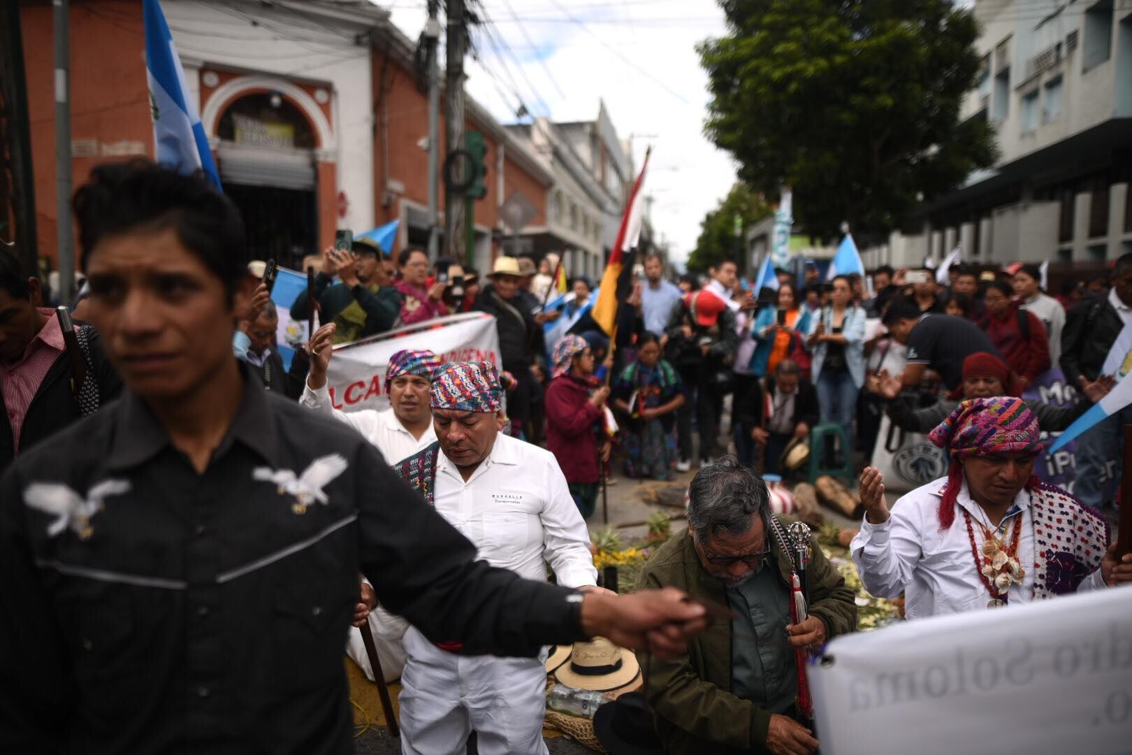 Luego de levantar el bloqueo, las autoridades indígenas participan en una caminata que recorre el Centro Histórico de la zona 1 de la Ciudad de Guatemala, por medio de la cual se piden la renuncia de la fiscal general, Consuelo Porras, el jefe de la Fiscalía Especial Contra la Impunidad (FECI) Rafael Curruchiche Cucul, la fiscal Cinthia Monterroso y el juez Fredy orellana.