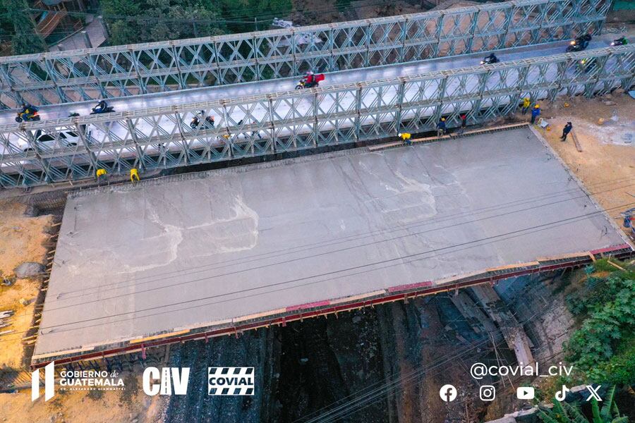 La Unidad Ejecutora de Conservación Vial (COVIAL) del Ministerio de Comunicaciones, Infraestructura y Vivienda (CIV) dio a conocer que la próxima semana se espera que sea habilitado el paso por el kilómetro 17.5 de la ruta al Pacífico CA-9 Sur, jurisdicción de Villa Nueva.