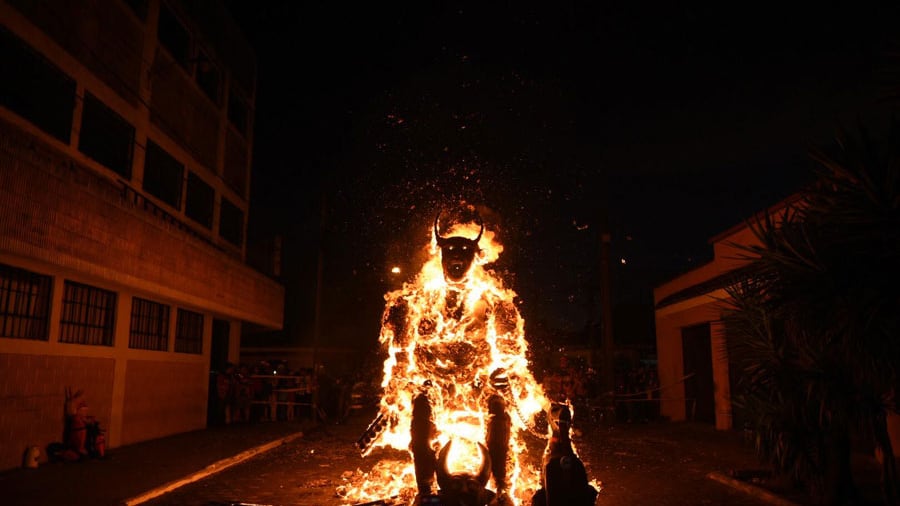 Con piñatas y figuras gigantes de diablos en varios puntos de la Ciudad de Guatemala se llevó la tradicional “Quema del Diablo“, a las 6 en punto.