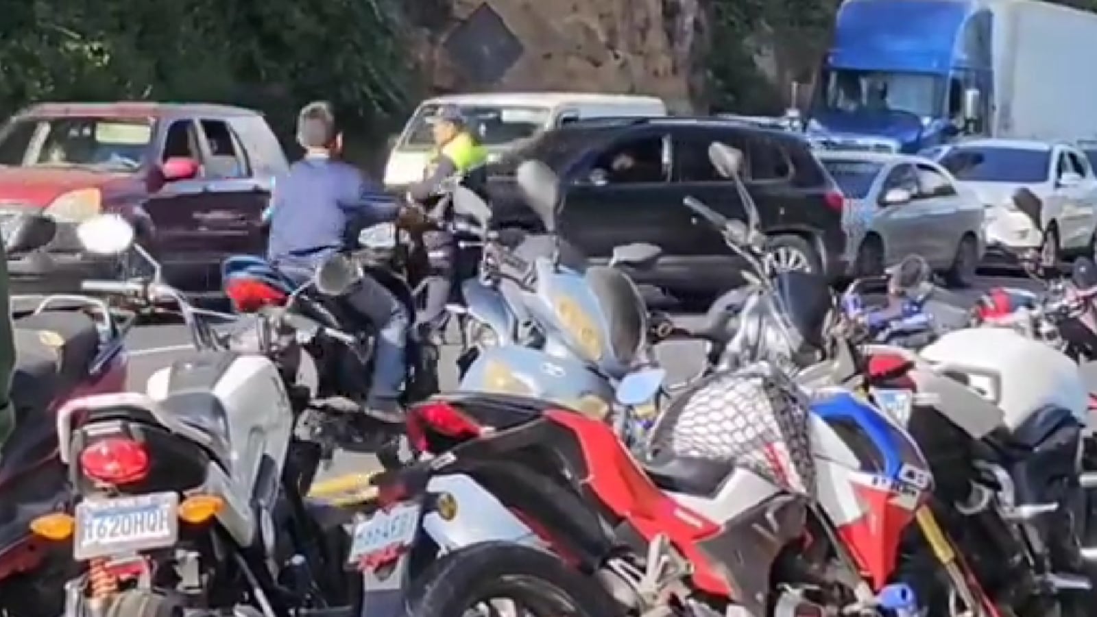 El video muestra al menor manejando la motocicleta ante la presencia de conductores de motocicletas y vehículos. Así como, ante la mirada de una agente de la Policía Municipal de Tránsito (PMT) y de varios agentes de la Policía Nacional Civil (PNC).