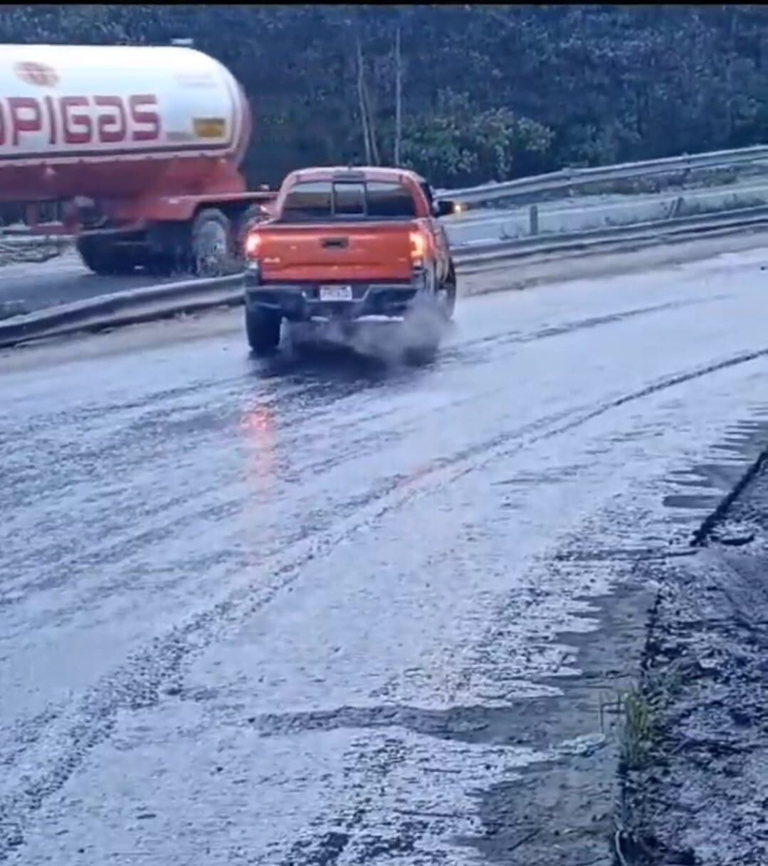 La entidad agregó que esta formación de hielo se reportó durante la madrugada de este martes en la Ruta Interamericana, especialmente en los tramos del área de Sololá, cumbre de Alaska, Nahualá, Cuatro Caminos y Huehuetenango.