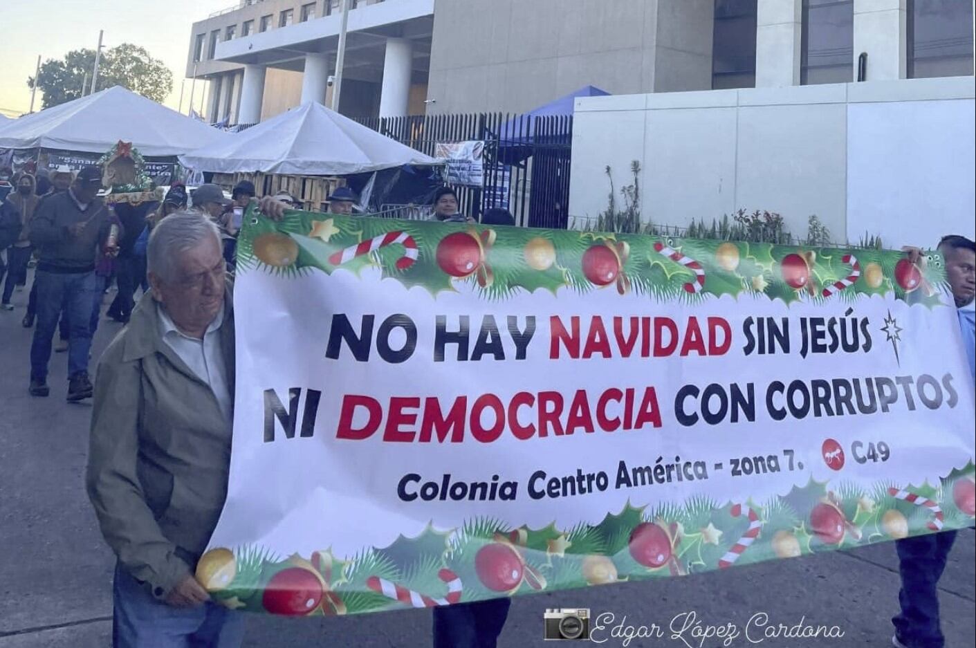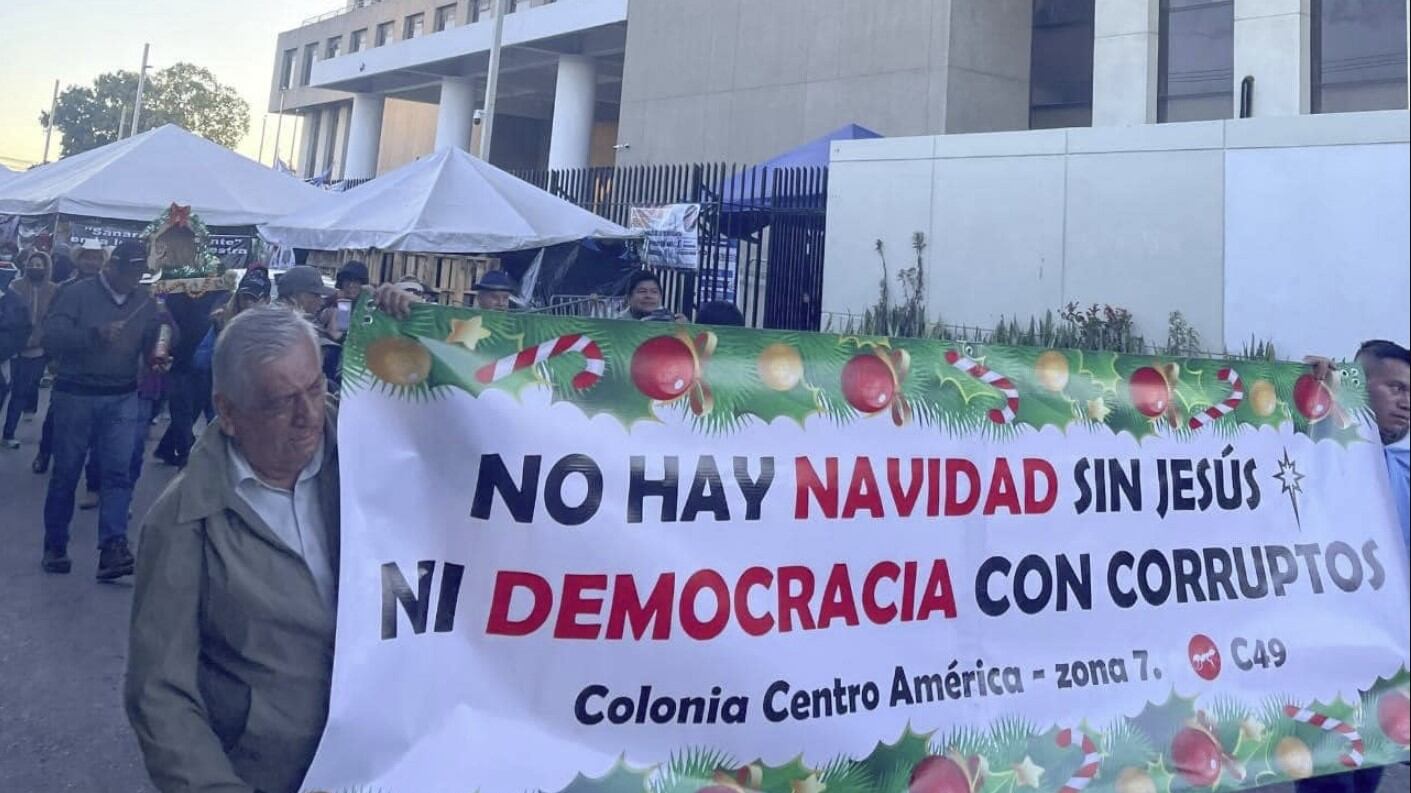 Pasando por las sedes del MP en el barrio Gerona y la Corte Suprema de Justicia (CSJ) en la zona 1 de la capital, los manifestantes participaron en la llamada “Posada por la Democracia”, cargando un pequeño pesebre para recordar el nacimiento de Jesús y haciendo sonar maracas y un caparazón de tortuga.