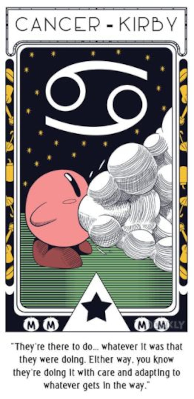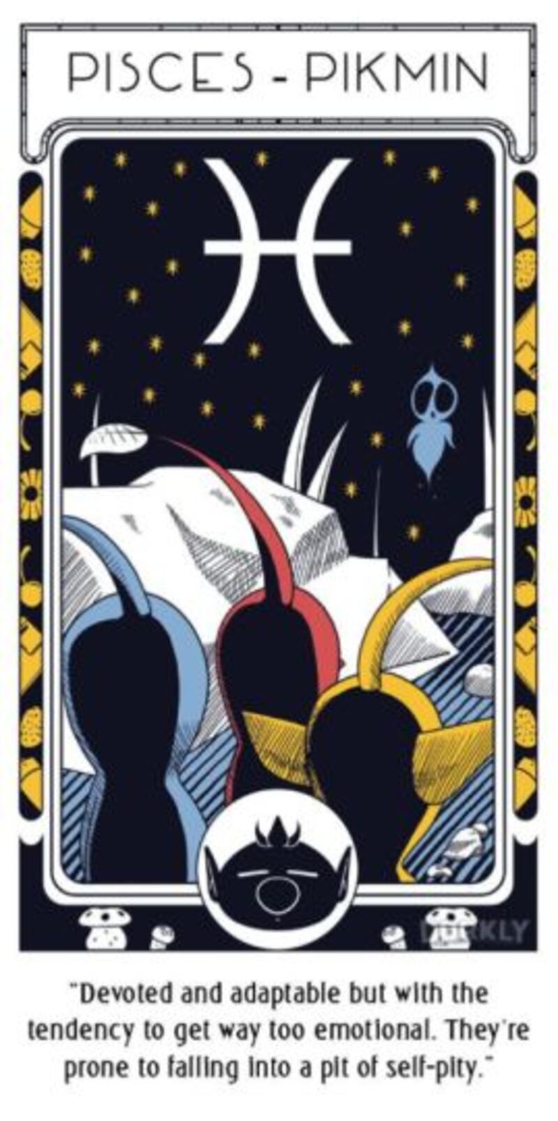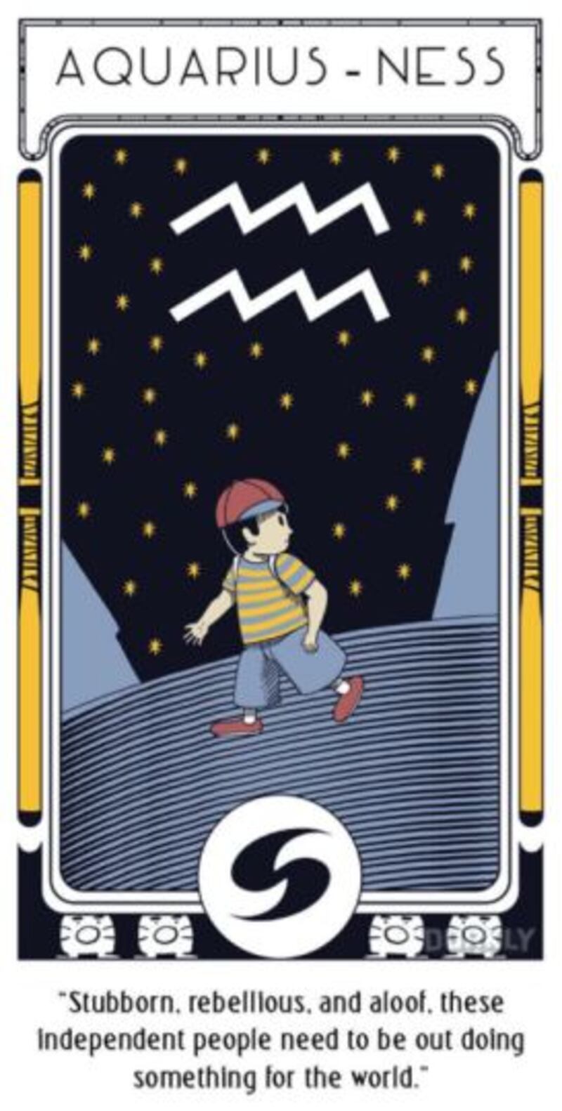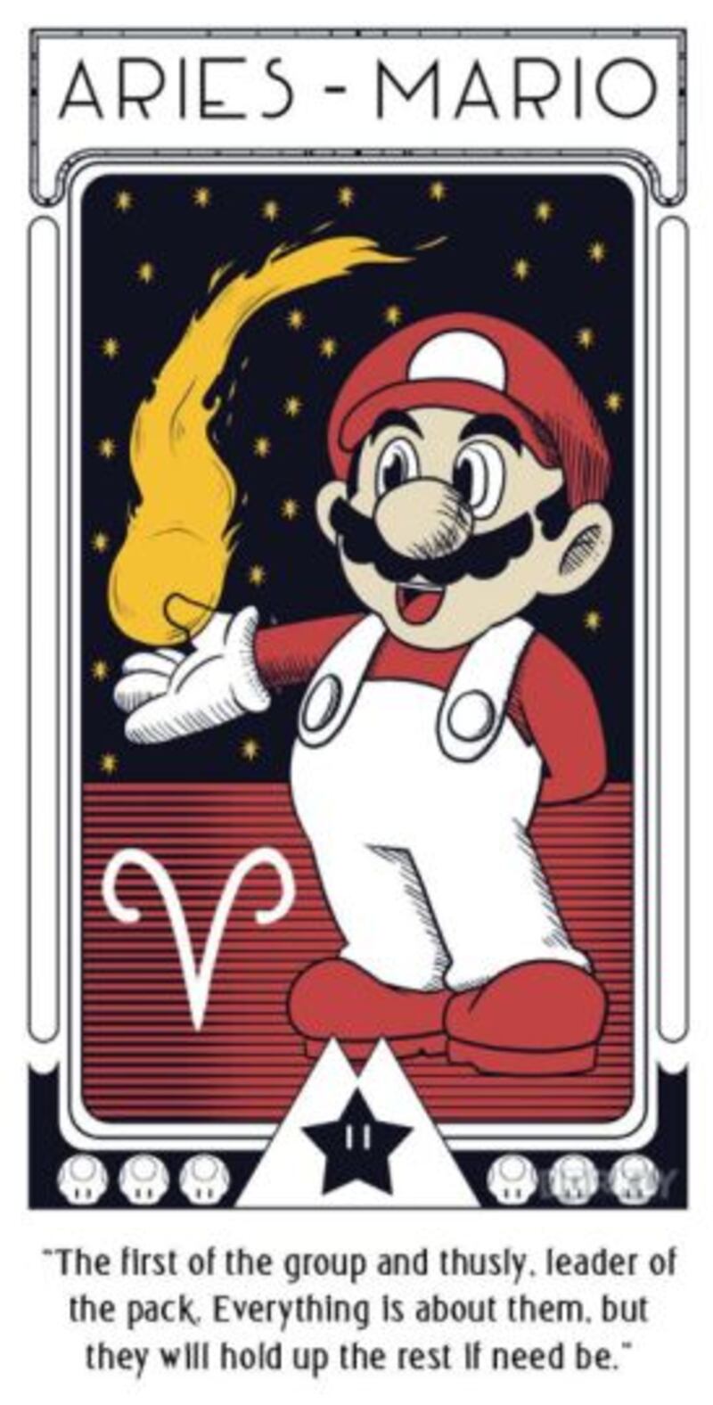 Esta ilustradora mezcló los símbolos con los personajes de Nintendo, resultando doce imágenes donde “Mario“, “Link” y “Kirby, entre otros, representan cada una de las constelaciones: Acuario, Aries, Tauro, Leo, Cáncer, Capricornio, Piscis, Géminis, Virgo, Libra, Sagitario y Escorpión.
