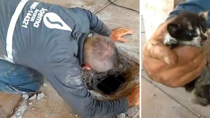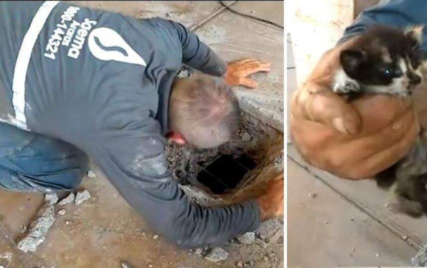 Finalmente, se dieron cuenta que unos gatos bebés estaban atrapados bajo tierra. Se cree que los animales nacieron en el techo y cayeron por la tubería de drenaje.