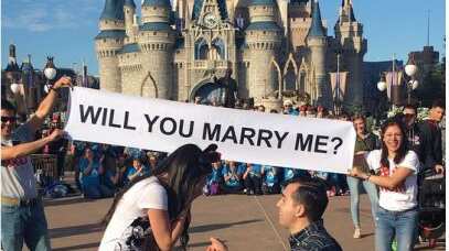 La pareja se colocó frente a uno de los emblemas de este parque temático de diversiones y mientras posaba para una fotografía, los “cómplices” de Eduardo, empezaron a desplegar un cartel sin que ella se diera cuenta “Will You Marry Me?” (¿Te casarías conmigo?), lo que desató la locura del público que presenció la escena.