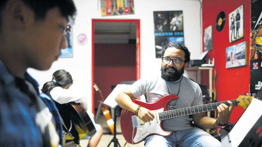 “Hace unos años abrí mi negocio. Empecé a dar clases de guitarra en el día y tenía un pinchazo por la noche. Sin embargo, el amor por la música hizo que decidiera cerrar el pinchazo y amplié la escuela de música”, comentó.
