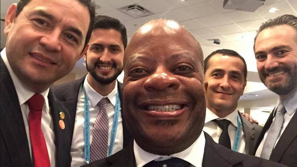 - La foto con el presidente Morales. Una de las reuniones que sostuvo recientemente el embajador de Estados Unidos en Guatemala Todd Robinson en Miami, Florida, fue aprovechada para la tradicional fotografía en compañía con el presidente Jimmy Morales. En la cuenta de Twitter del gobernante se compartió la selfie. Lo acompaña parte de la delegación que participó en la cumbre con Estados Unidos.