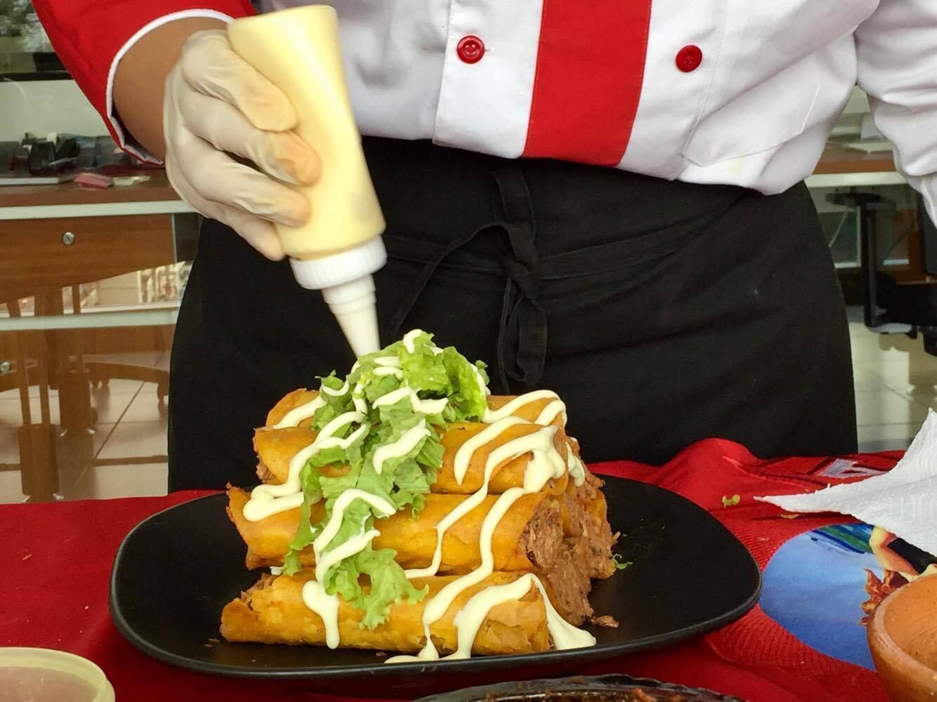 Hacemos la mezcla con maseca, luego elaboramos las mini tortilla y las ponemos a freír en aceite hasta que estén al dente sacamos y reservamos.
