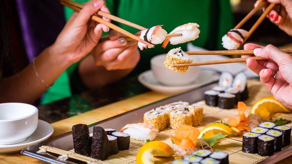El sushi es un platillo de origen japonés que está basado en arroz. Según el gusto de cada persona, suele prepararse con mariscos como salmón, camarón, cangrejo, entre otros. Es uno de los platos más populares de la gastronomía japonesa alrededor del mundo.