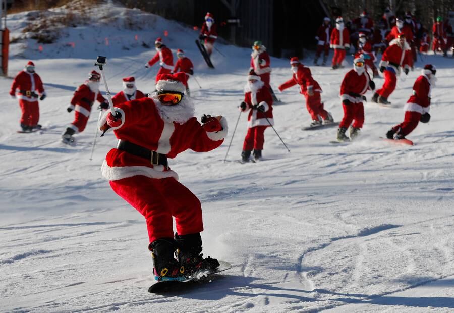 La 18va edición anual de Santa se realizó en el centro de esquí Sunday River en el oeste de Maine. El evento principal es el descenso de los Santa esquiando o en snowboard por las colinas a fin de recaudar dinero para la Fundación de la Comunidad Sunday River, que ayuda a los grupos de la zona.