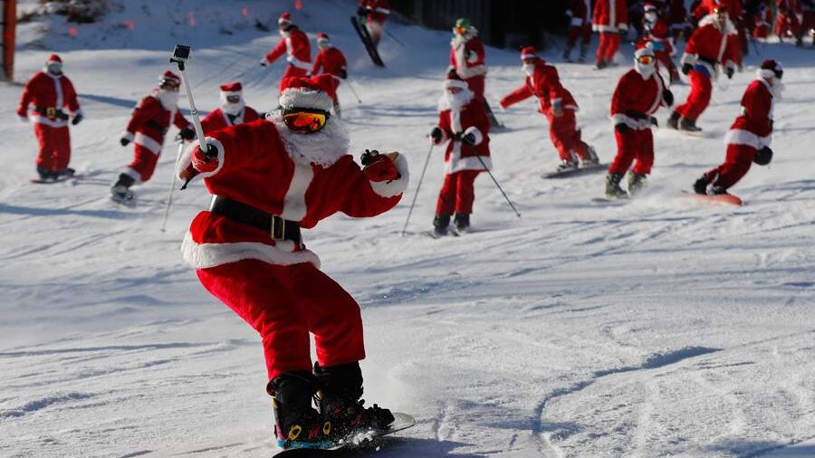 Santa Claus es conocido por bajar de las chimeneas, pero un día al año, decenas de Santas se pusieron el domingo los esquíes e intentaron no caer rodando por la montaña.