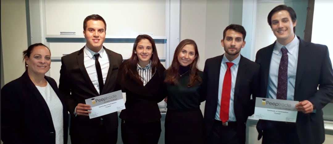 La Facultad de Ciencias Económicas (FCE) de la Universidad Francisco Marroquín fue invitada a participar en el Concurso Internacional Peeptrade con un equipo de cinco alumnos de las carreras de Administración de Empresas y Economía con Minor en Finanzas.