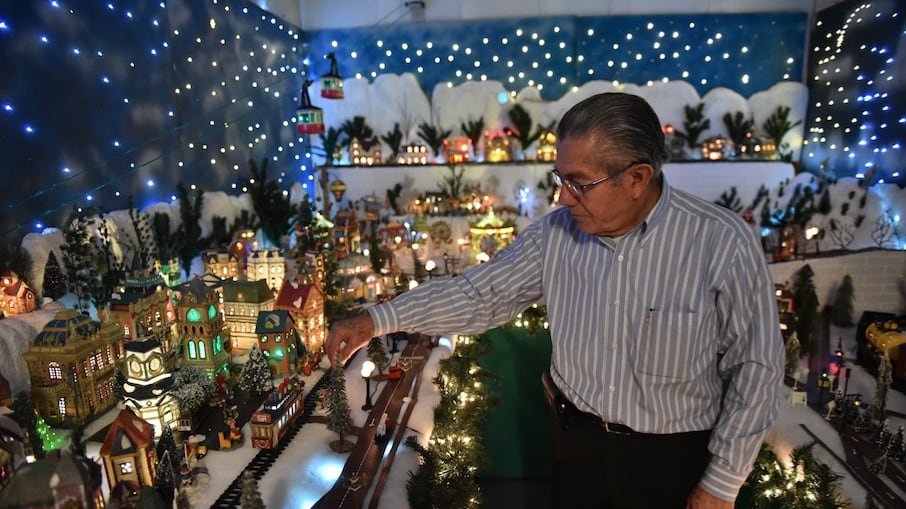 Hace 28 años comenzó la tradición de Fernando Castillo por construir una villa navideña en miniatura. Al empezar, contaba únicamente con dos casitas, pero poco a poco fue creciendo hasta tener más de 200 piezas.