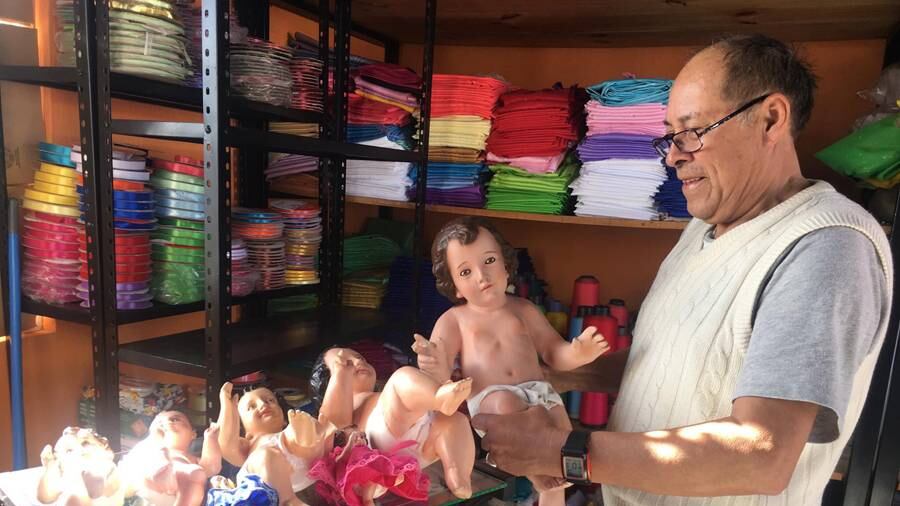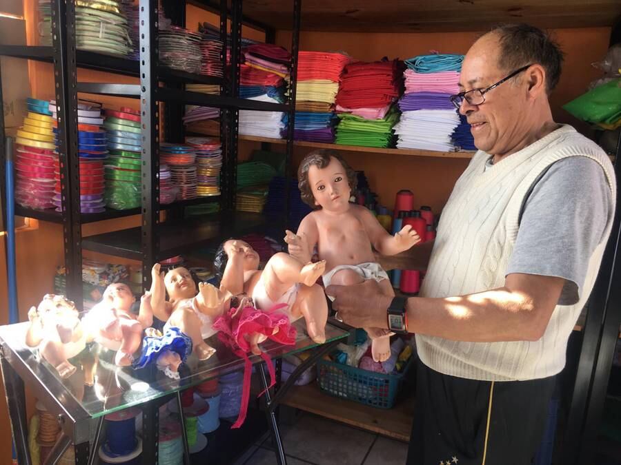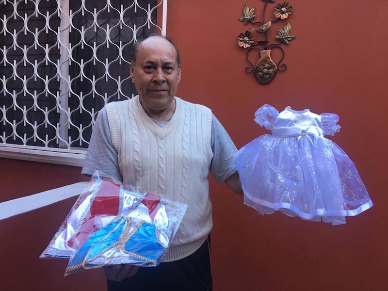 “El primer vestido que hice fue para el niño de mi casa, la idea era verlo bonito y lo hice blanco con listones rojos, por consejo de mi suegra”, recuerda Raúl Guerrero al hablar de un oficio que aprendió hace aproximadamente 30 años y que permite mantener viva una tradición chapina.