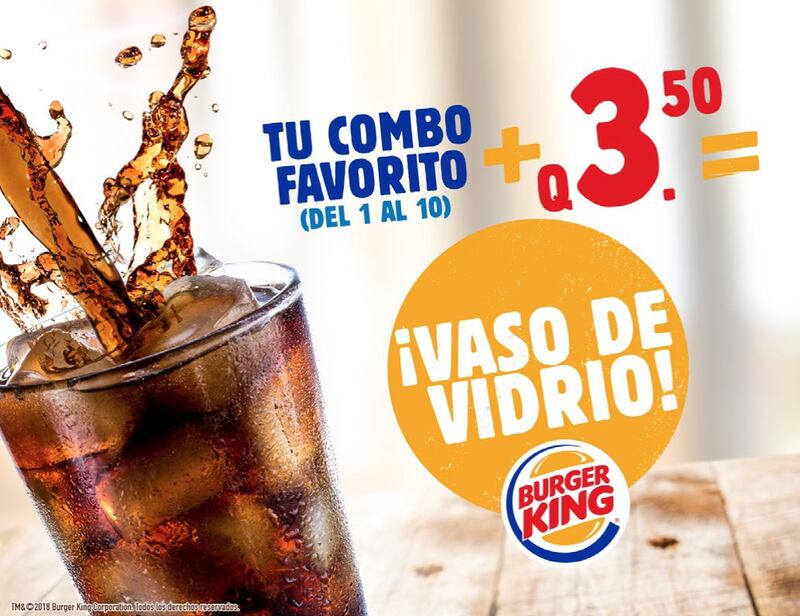 Además, al comprar tu combo favorito, por Q3 podrás llevarte un vaso de vidrio lleno con la bebida que tú prefieras.