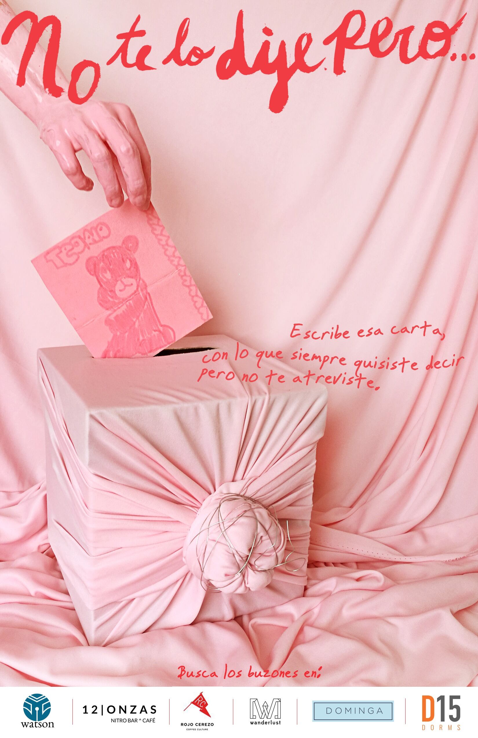 Estos buzones están cubiertos con una tela de color rosado y un nudo, que según la artista simboliza el nudo en la garganta que se forma al no atrevernos a hablar y decir lo que más queremos. Las cartas pueden ser escritas en cualquier tipo de papel, desde servilletas hasta billetes. El objetivo es que todos puedan escribir los sentimientos que han guardado.