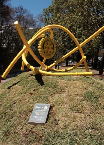 "La escultura representa el orden en el caos. Parece un garabato, pero está estructurada con principios de composición sólidos que permiten rotarla sin perder su balance. Su dinámica configuración abraza al globo terráqueo. Evoca el actuar de las asociaciones rotarias, provenientes de todas direcciones y reunidas en beneficio de la humanidad”, explicó Pepo Toledo.