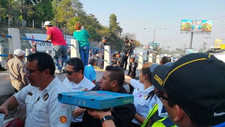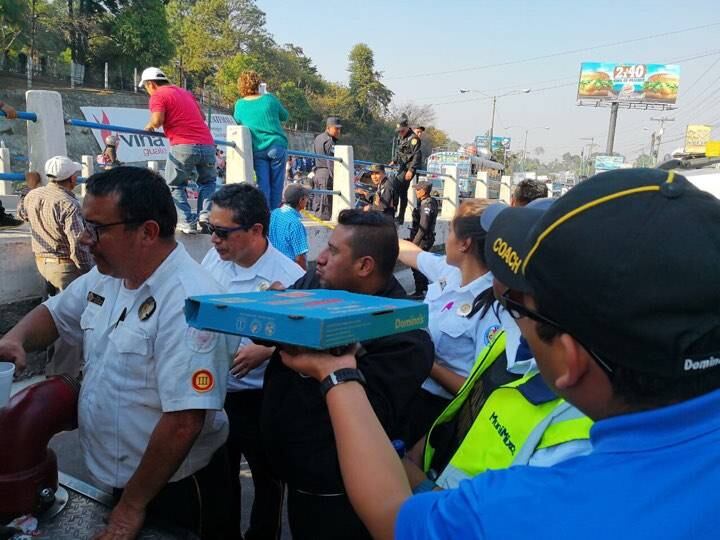 Alrededor de las 15:00 horas varios motoristas de Domino’s llegaron al lugar para entregar cajas de pizza y doble litros de Coca-Cola. Según el gerente de la marca, se logró entregar comida a más de 250 personas que se encontraban en el sitio.
