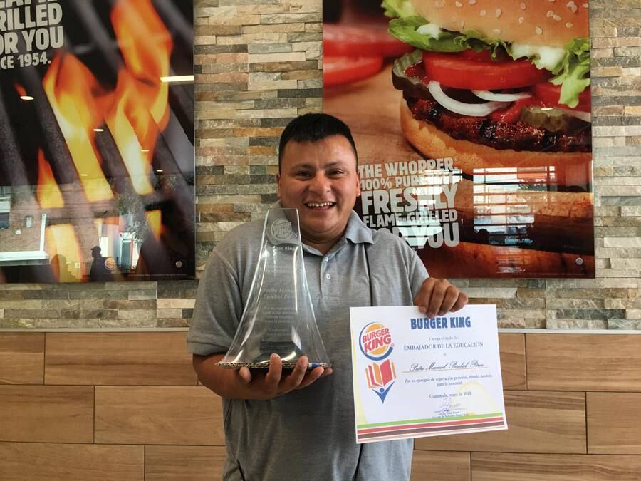 El guatemalteco Pedro Perebal fue elegido este año como el Embajador de la Educación de Burger King. La cadena de hamburguesas eligió al políglota por su esfuerzo, dedicación en su formación y por su deseo de superación.