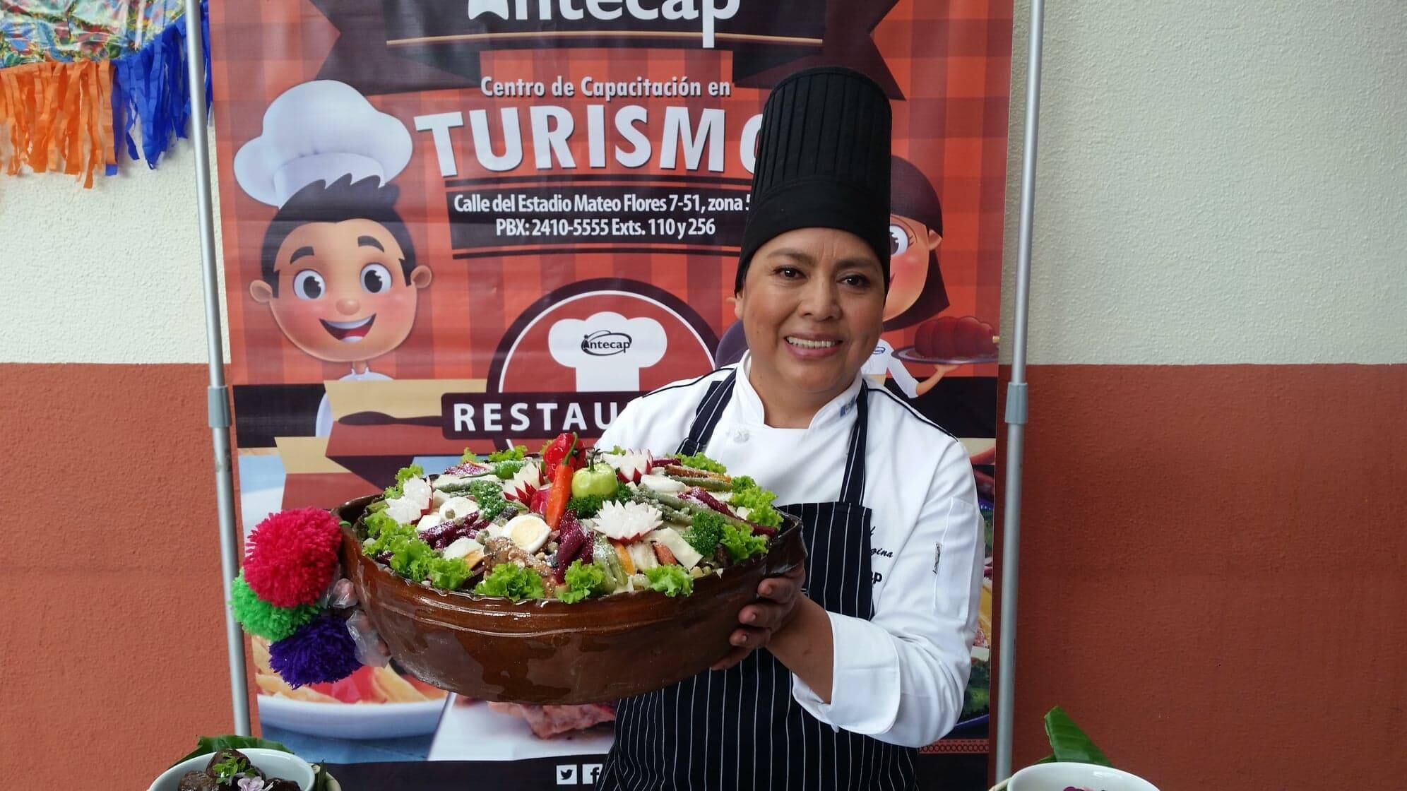 La galardonada chef Aura Regina Equité, y su equipo de chefs y participantes de la especialidad de Gastronomía Internacional en Intecap, serán los encargados una vez más de elaborar 1,100 libras de fiambre.