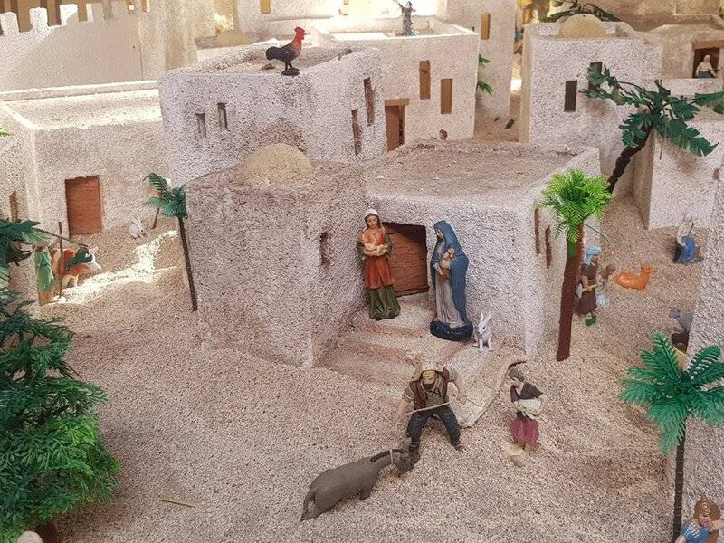 Personas, casas, amaneceres, arena, animales de granja y por supuesto, las imágenes de la Sagrada Familia, han sido colocadas cuidadosamente para tratar de revivir este famoso pasaje que sucedió hace más de dos mil años.