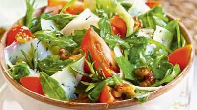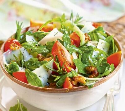 Tiene un aspecto delicioso. Lleva hojas de espinaca frescas, zanahoria, cebolla, manzana, champiñones y un puño de frutos secos picados. Mezcla todos los ingredientes y adereza con una vinagreta hecha con aceite de oliva, vinagre y una pizca de mermelada de higo o de tu preferencia. Para que los champiñones y la manzana no se oxiden, rocíalos con limón después de lavarlos y cortarlos en láminas.