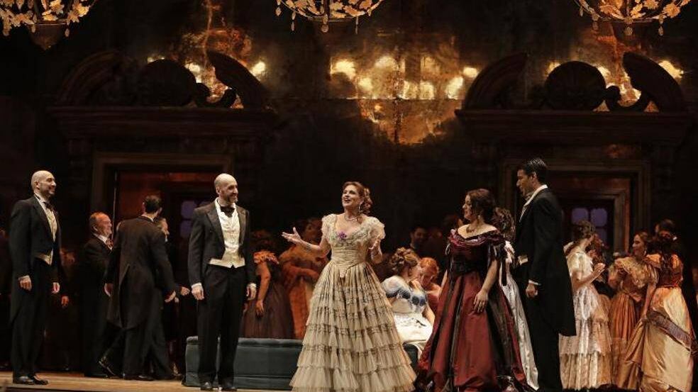 Uno de los momentos más brillantes y célebres de "La Traviata" es la escena del brindis Libiamo ne’lieti calici al comienzo del primer acto.
