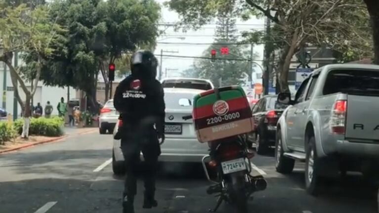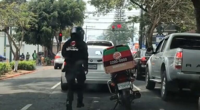 El repartidor de comida rápida fue filmado desde un vehículo que se encontraba justo atrás de él en una de las vías de la zona 10.