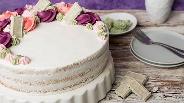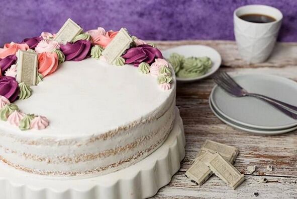 El pastel está elaborado de un bizcocho de vainilla remojado en tres leches chocolate. En el centro tiene un manjar con chocolates Cookies ‘n’ Cream y está decorado con un forro de crema de flores y chocolates Cookies ‘n’ Cream de Hershey’s.