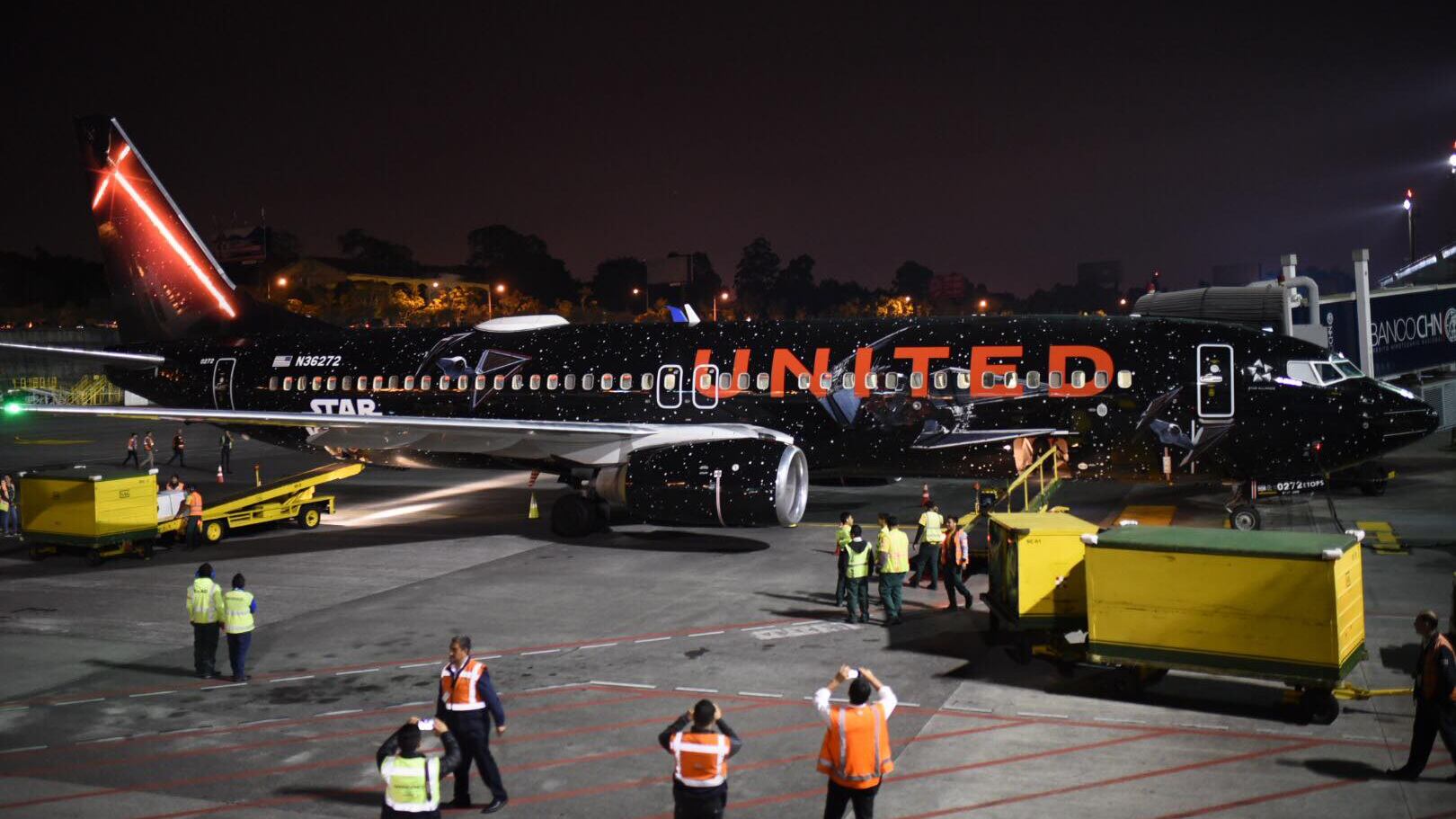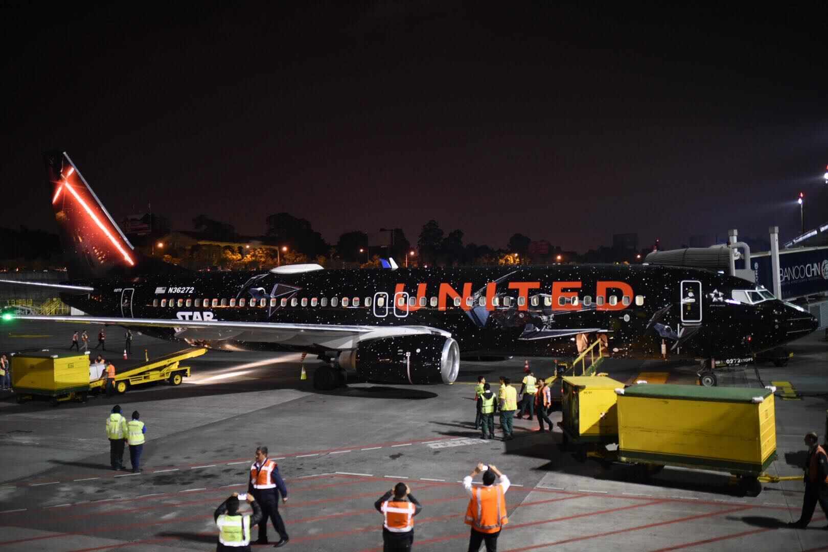 Un Boeing 737-800 personalizado con la novena entrega de Star Wars: The Rise of Skywalker, llegó al Aeropuerto Internacional La Aurora (AILA) a las 10:27 de la noche este miércoles 20 de noviembre.