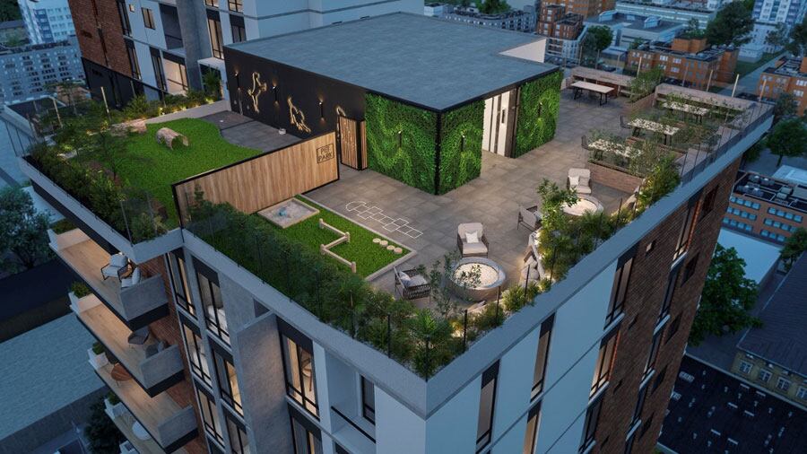 - Amenidades: Salón y jardín social, juegos infantiles, sky Lounge, churrasqueras con mesas al aire libre y fire pits, área para mascotas (juegos, entrenamiento y grooming), gimnasio, jacuzzi, entre otras.