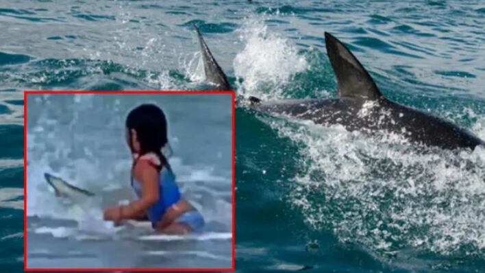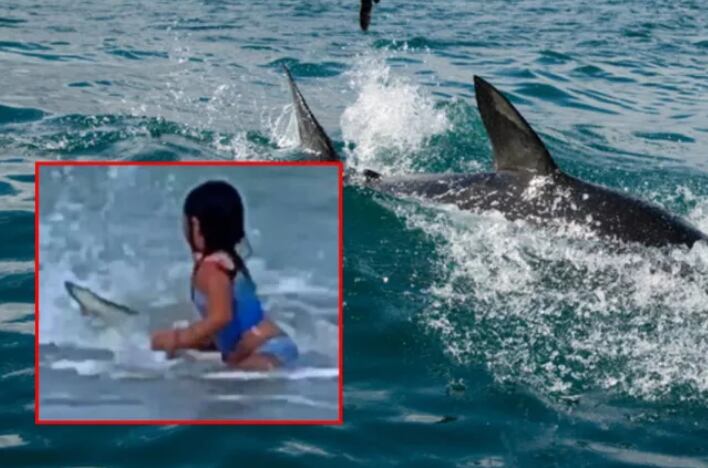 En las imágenes, que se comparten profusamente en redes, se alcanza a ver una de las aletas del tiburón que aterrorizó a la menor al acercarse a tan solo unos centímetros.