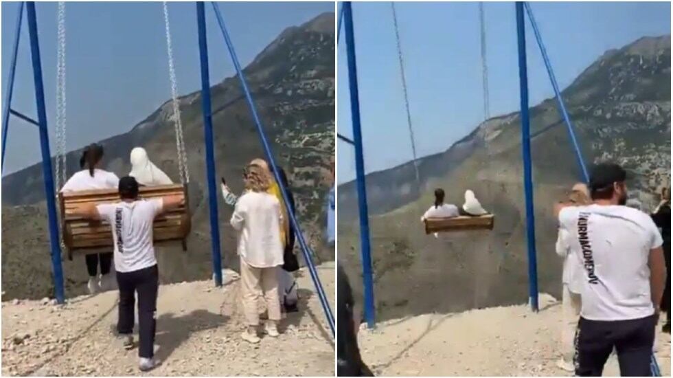 En Rusia, dos mujeres estuvieron a punto de vivir una tragedia luego de que se rompiera un columpio que daba a un barranco que tiene una altura de mil 500 metros.