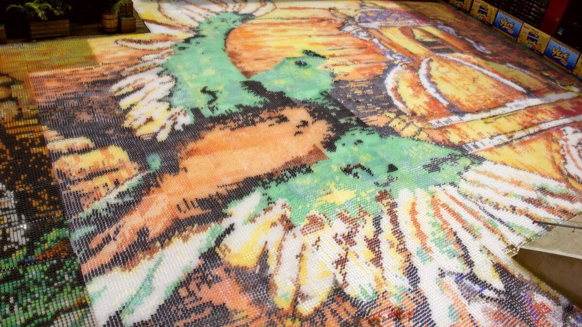 Para su elaboración, de 603.47 m2 se utilizaron más de 118 mil 280 vasos para crear elementos icónicos de Guatemala.