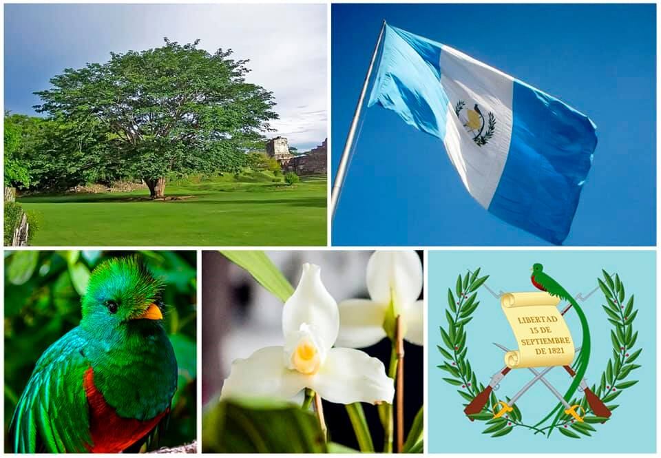 El Quetzal, la Bandera, la Ceiba, la Monja Blanca, el Escudo de armas, la Marimba y el Himno Nacional representan al país, tanto a nivel nacional e internacional.