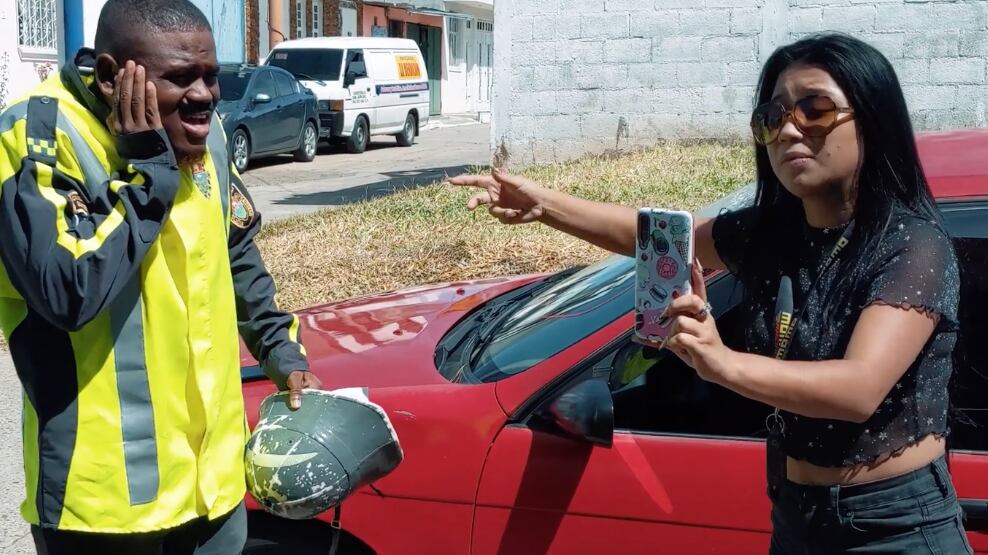 En el video que tiene más de 131 mil reproducciones, Esme La Chapina protagoniza a la automovilista afectada, pues el agente busca la forma de imponerle una multa de tránsito a pesar de tener su papelería en orden.