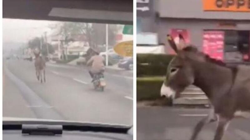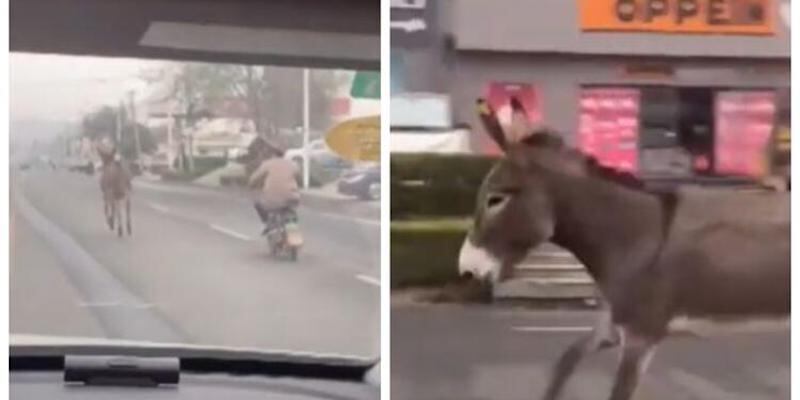 El video fue grabado el pasado 3 de noviembre y en las imágenes que ya circulan en redes sociales, se puede observar al asno correr a toda velocidad mientras era perseguido por un motociclista (empleado del restaurante).