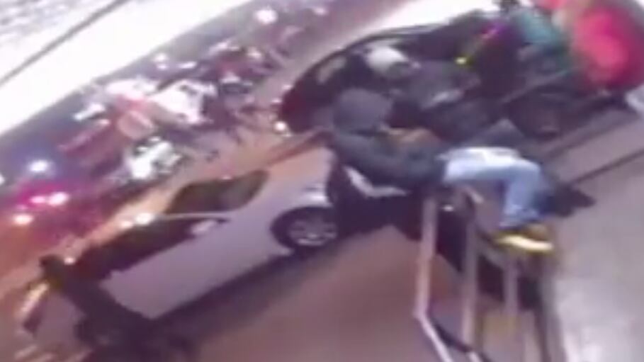 Una cámara de vigilancia captó el momento en que un hombre armado le dispara a varios jóvenes que se encontraban en la puerta de una cadena de comidas.