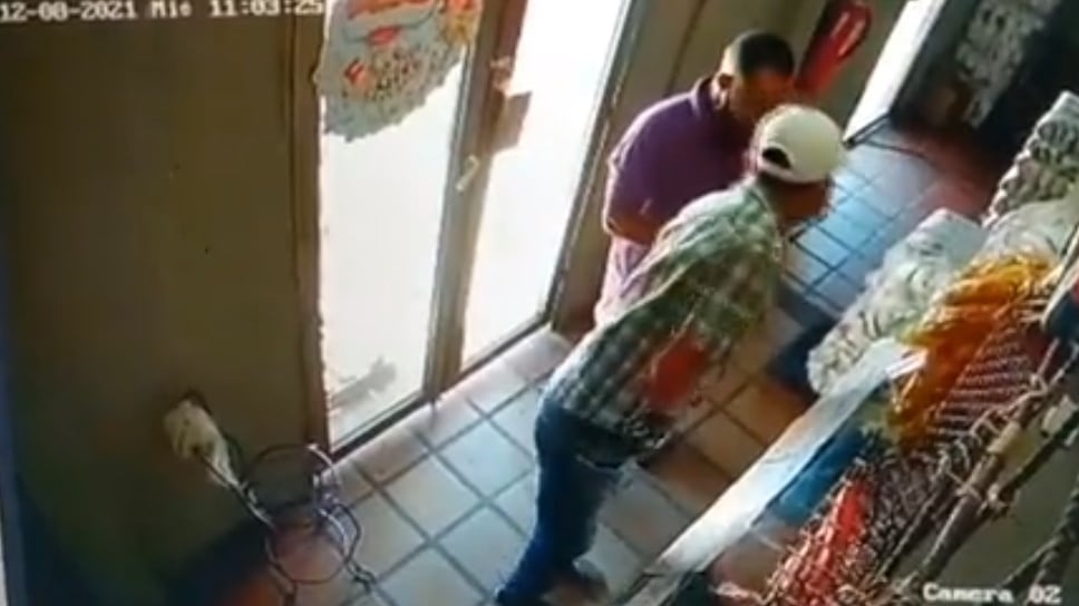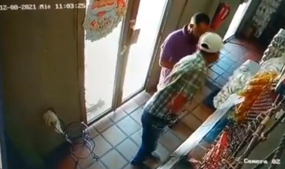 Las personas que compraron un artículo en la comercializadora de Cabimas se fueron y los dos hombres se quedaron frente al vendedor.